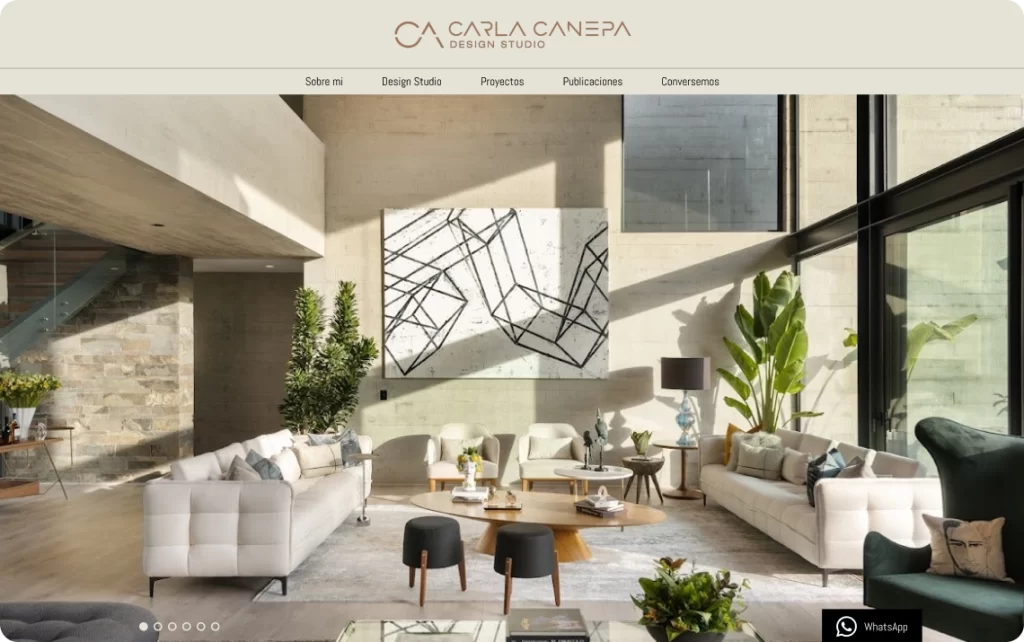 Proyecto web para Carla Cánepa Design Studio (Lima/Miami) centrado en portafolio, autoridad y conversión a contacto.
