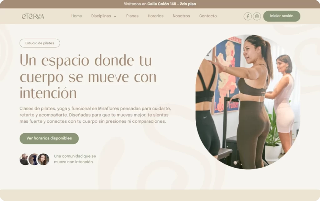 Etērea Studio es un estudio en Miraflores que ofrece clases de pilates, yoga y entrenamiento funcional.