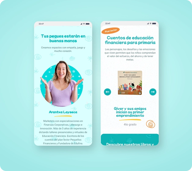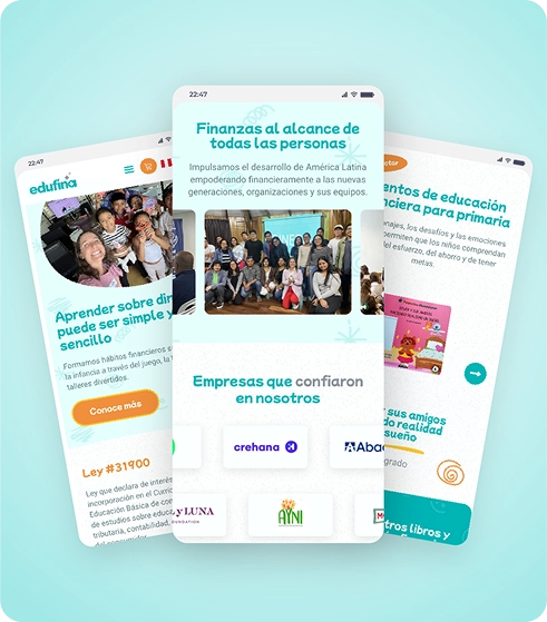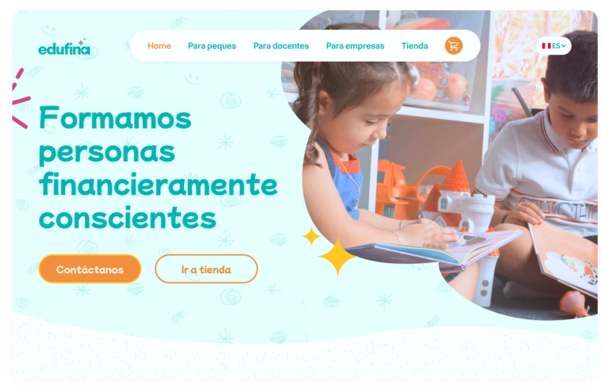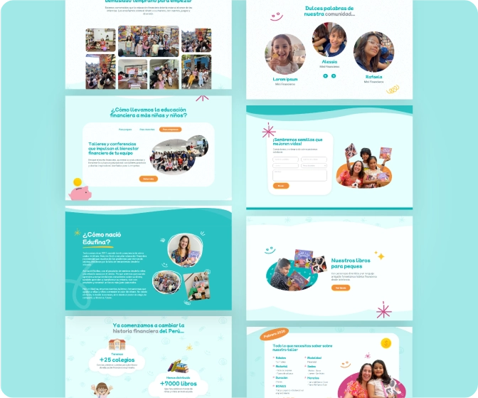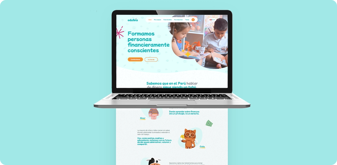 Diseño y desarrollo web para Edufina, plataforma de educación financiera enfocada en niñas, niños y familias.